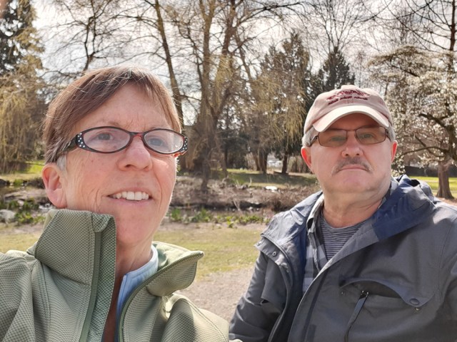 We walked east on Adanac from our place, over the freeway. Then turned south to a lovely duck pond. I took my first selfie at the pond! But, if it’s a photo of two people, can you really call it a selfie? Maybe it should be an “Us-ie”. Any ideas?