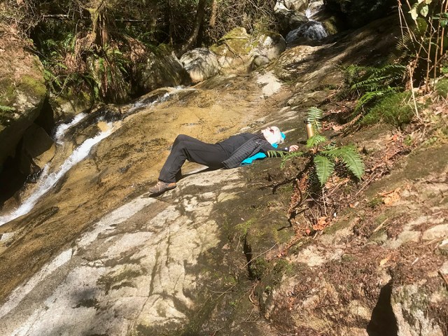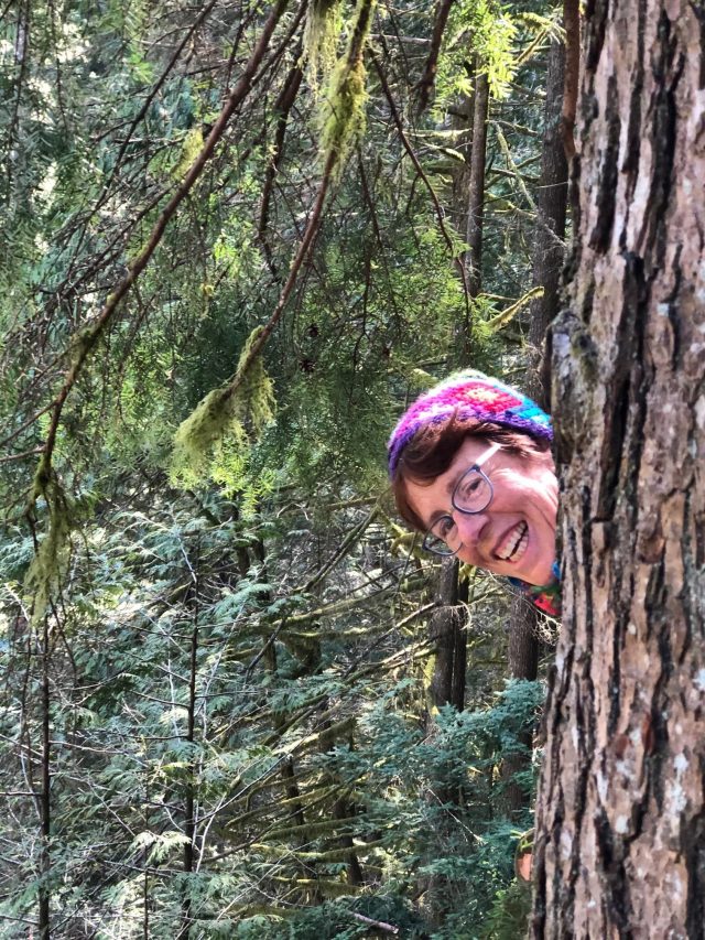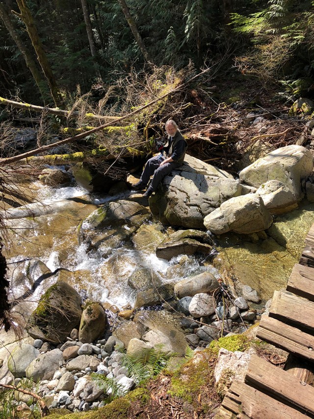 Luckily, we don’t have to walk far to find trails. Five minutes away from our back door, we entered Secret Trail and followed it over springy underfoot pine- and fir-needle cushioning, over roots and rocks, and over ten creeks with bridges of varying sturdiness and safety, to Raven Falls. Boots, the fearsome attack chihuahua, kept us safe. We had lunch on the rocks at Raven Falls.
