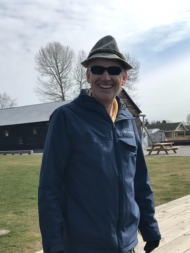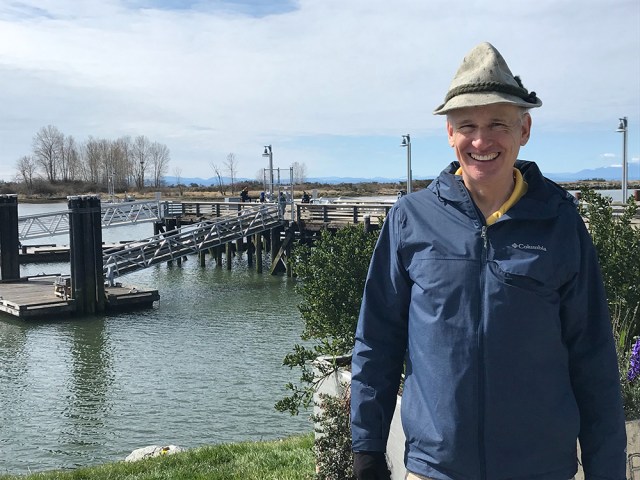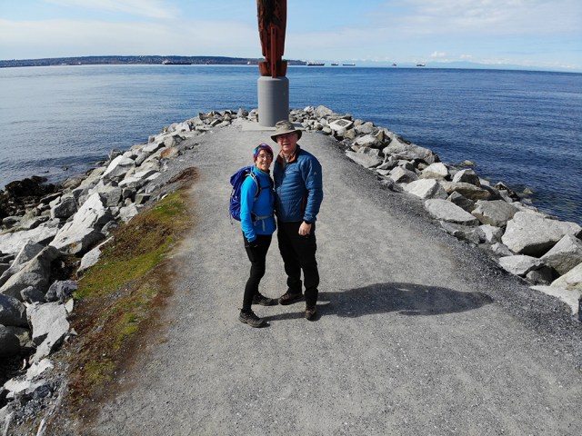 Sherry and I started at Garry Point Park in Richmond and walked east on the trail along the river to about Gilbert Road and then went back the same way. This is my hat that I bought in Austria many moons ago.