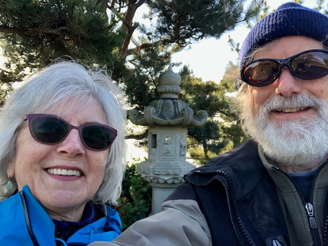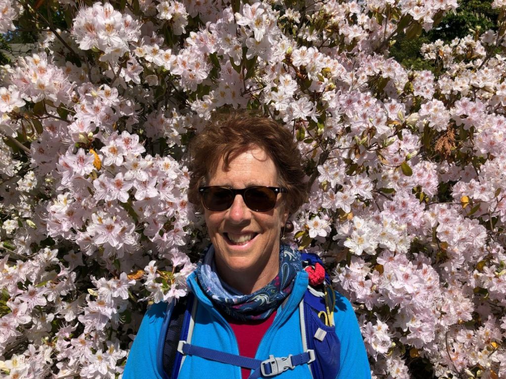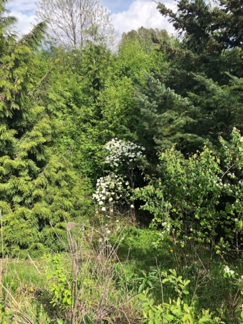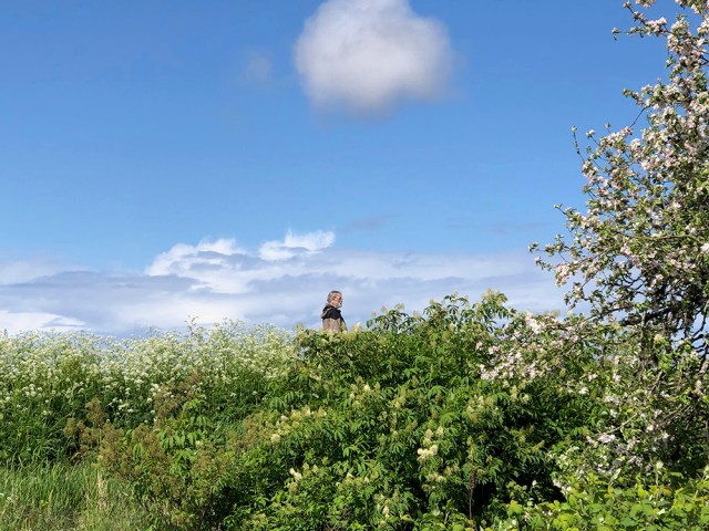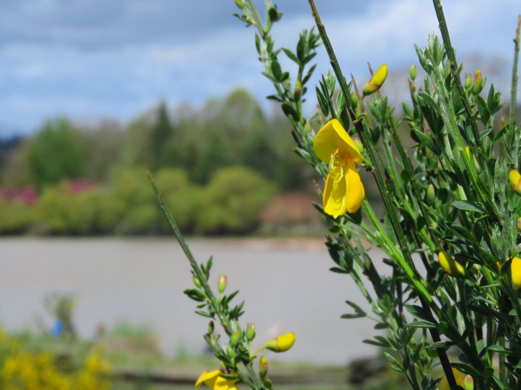 We set out at 10:30 from the first parking lot in Iona Beach Regional Park, following instructions to social distance our car. The starting selfie very easily included flowers with water as the trail toward the beach and our chosen route, the North Jetty, was full of dogwoods, broom, phlox, and heritage apple trees. We were also treated to dozens of excited swallows and a few red-winged blackbirds in the brush along the way.