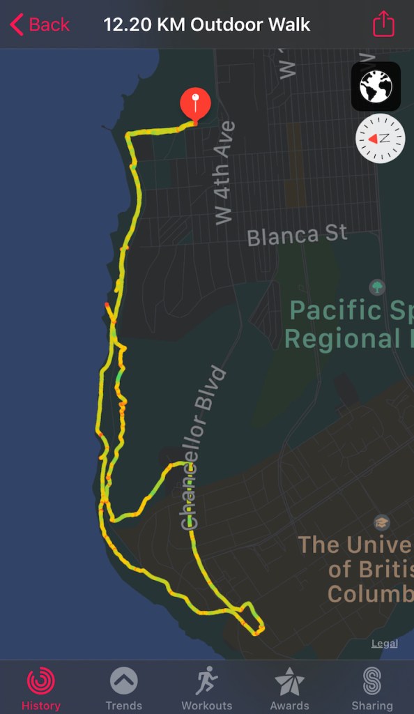 Janet and I had a wonderful walk from Jericho Beach to the UBC Rose Garden for lunch. We then returned by walking the Admiralty Trail (Pacific Spirit Park).