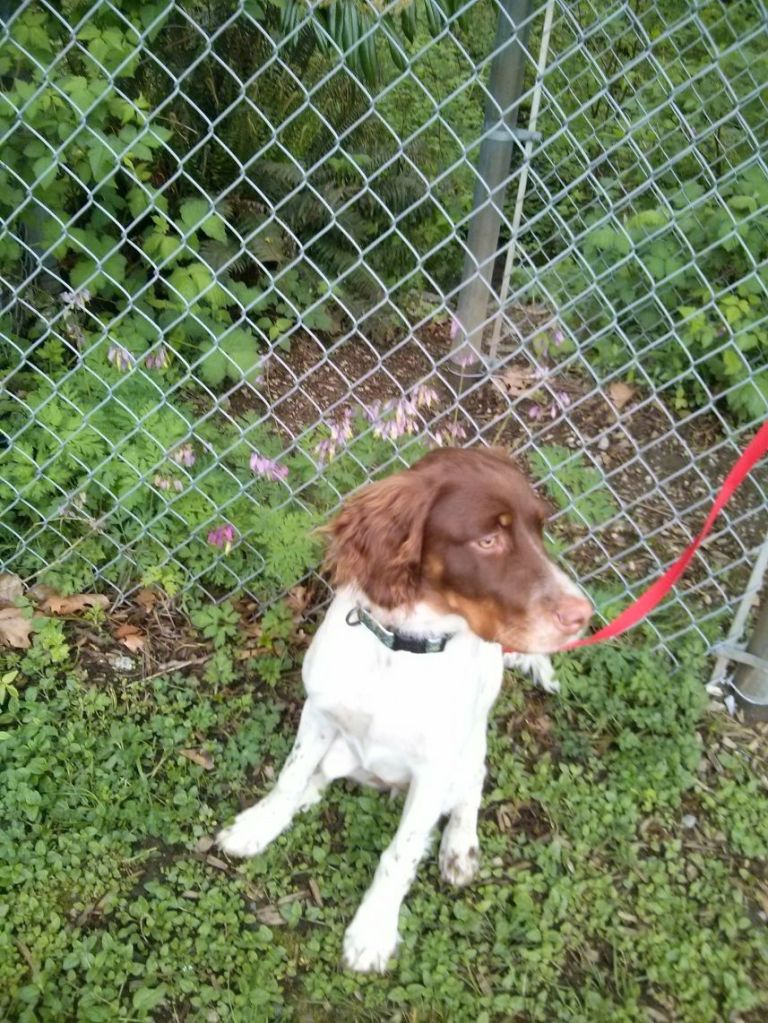 Hi. My names Maisy and ahm awmost 5 months old an ahm the new Master of Kathy and Donny B. I made Donny take me out way up d’hill and back to dis lil crik near my den so yu could get my picher by dees flours next to d’crik. Dare reellazy dem2 but ahm ahnem all d’time so i can sleep all nite. Bye, i gotta chase dees cherry petals. Luv, Maisy