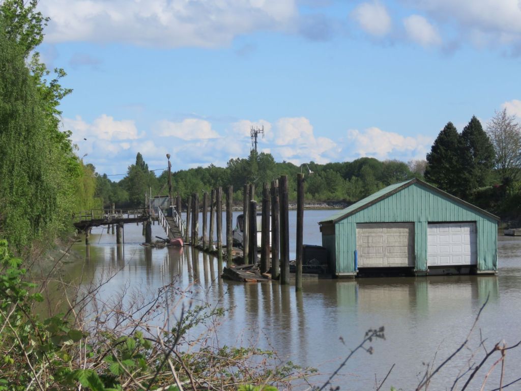 Macdonald Beach is a very popular spot for dogs and many were in evidence. I headed East along the River, turning South after passing under the Arthur Laing Bridge. This is another spot where there was a small settlement, Eburne, that dated back to the early 20th century. Alas, it too is gone — the last remnants demolished when the new bridge was built. Continuing south I crossed the river again and walked South, under increasingly threatening skies, to my starting point.