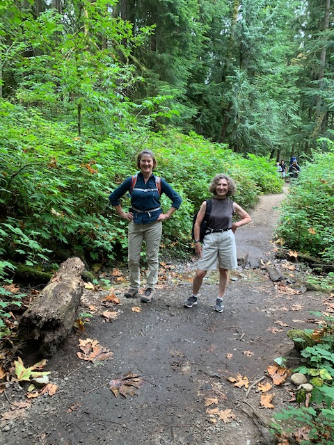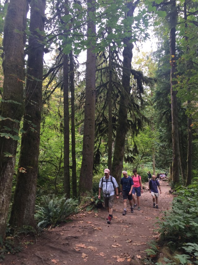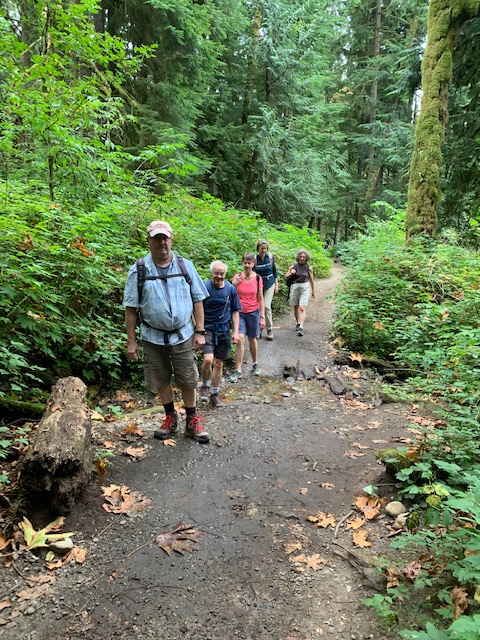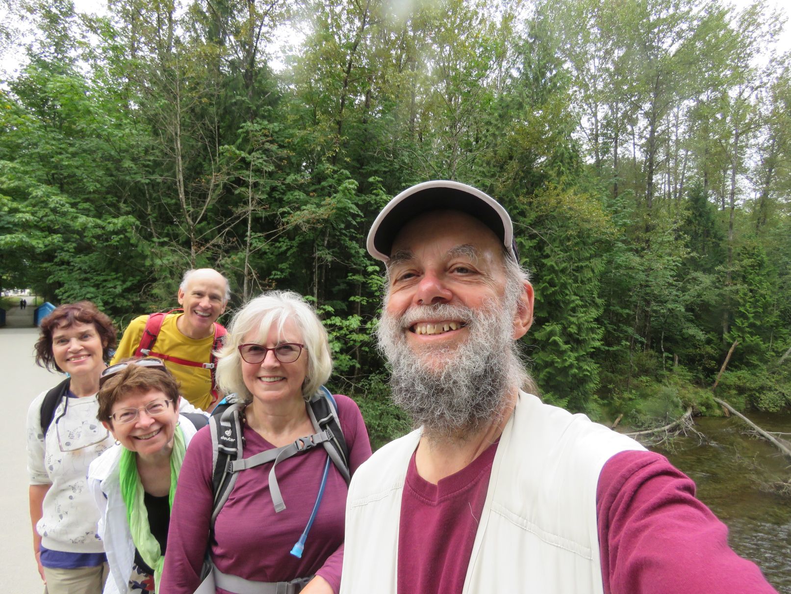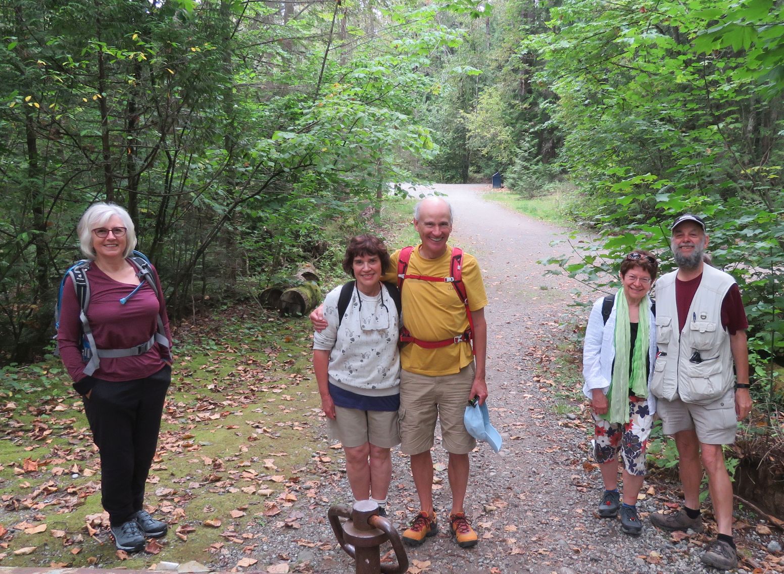Group 2 included Joette, Fred, Julie, Alan, Carol and Sandy. After the starting selfie (where the camera on the ground made for an interesting shot), we headed out with enthusiasm and lots of talking which pretty much held up until the end. The trip to Crystal Falls was fun with the Falls Trail being decidedly more rugged but actually much busier than the Traboulay. We had a short lunch stop and then decided to return on the west trail (which is actually two trails in some parts with the TCT running alongside the Traboulay and then joining it).