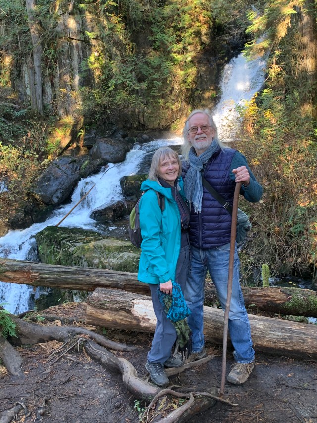 Meanwhile, Sandy had arrived at the starting point after the other groups had left, started along the trail, and caught up with Group 4, or was it 3? We met him and them at a point where the path was conveniently wide for chatting. Sandy joined Group 1 and we returned, taking the side trip to the dramatic Steelhead Falls on our return.
